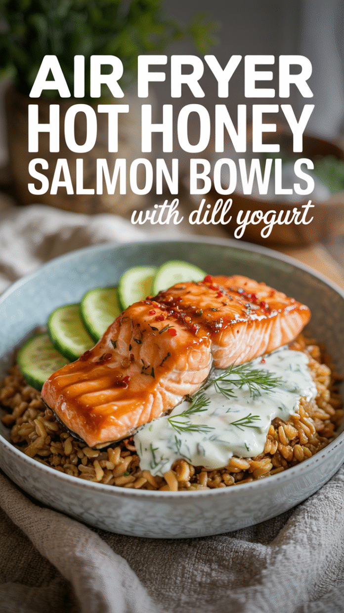 Air Fryer Hot Honey Salmon Bowls with Dill Yogurt
